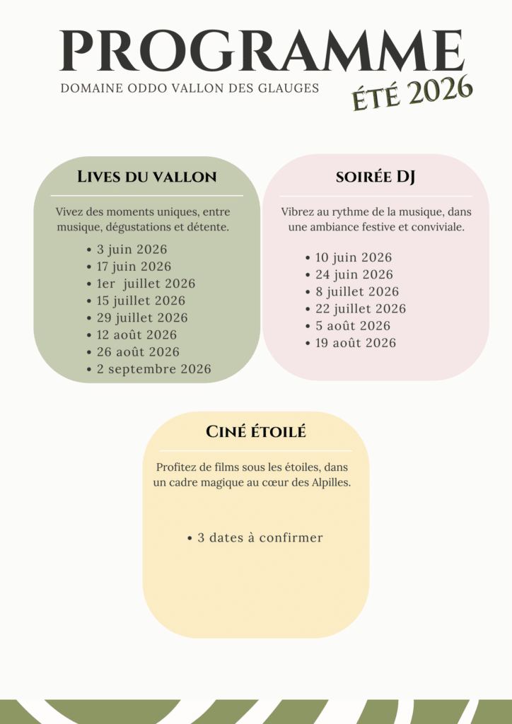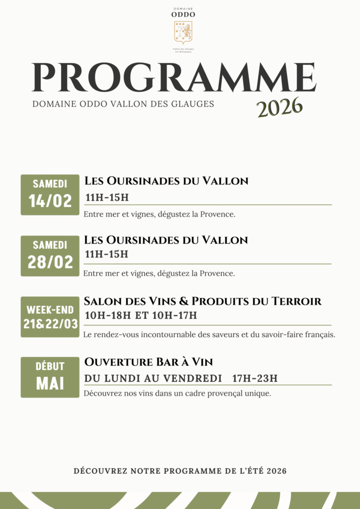 Les festivités se poursuivent au Domaine ODDO Vallon des Glauges. Retrouvez ci dessous le programme de nos prochains événements !