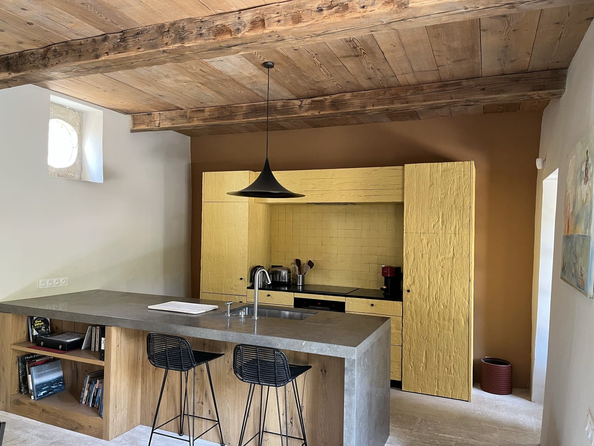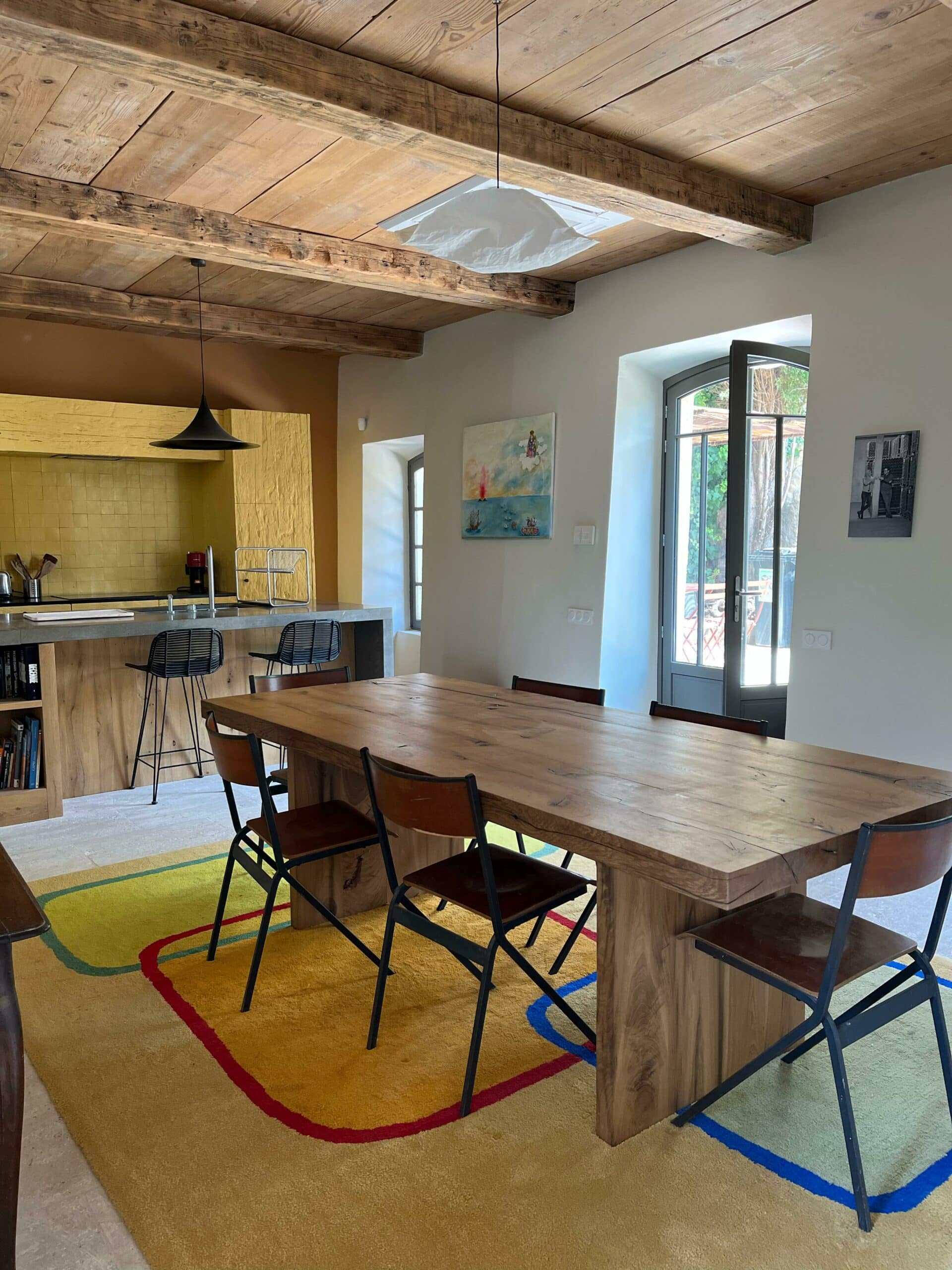 À l’extérieur, une terrasse ombragée vous attend pour des repas en plein air, des moments de convivialité en famille ou entre amis, ou simplement pour profiter du rythme paisible de la Provence.